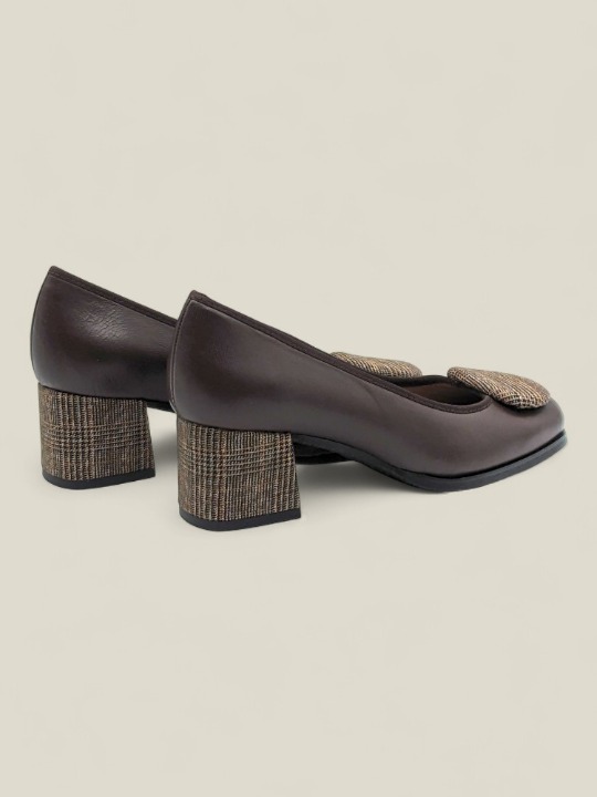 estos zapatos de piel. Su silueta de salón clásica se realza con un broche