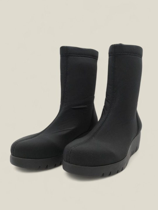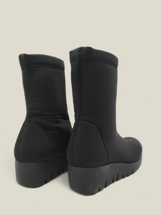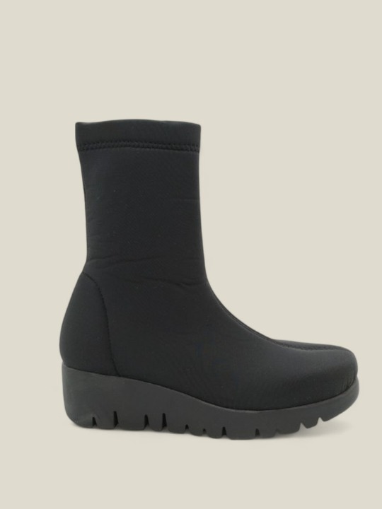 Descubre la máxima comodidad sin renunciar al estilo con nuestros botines de diseño tipo calcetín. Confeccionados en un material textil elástico y suave, se ajustan a tu pie y tobillo como un guante, proporcionando una sensación de ligereza inigualable. La suela de plataforma o cuña baja no solo añade un toque moderno, sino que también garantiza una pisada estable y confortable para tu día a día. Perfectos para un look casual y contemporáneo. Cuña de 4 cm.
