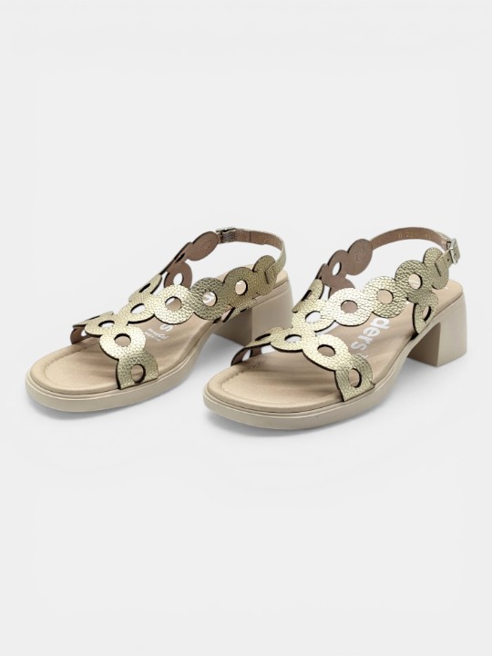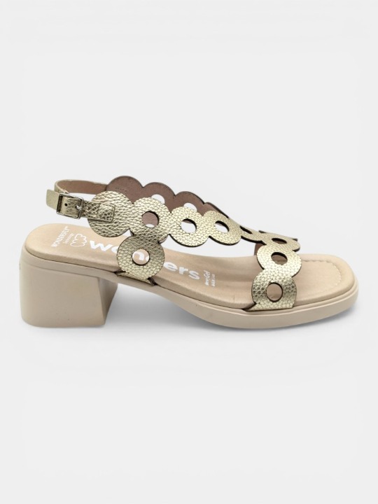 La sandalia de Wonders redefine el calzado de verano fusionando artesanía y vanguardia tecnológica. Su pala de piel con grabado sutil presenta un diseño de círculos calados que envuelve el pie con delicadeza, mientras que el cierre de hebilla ajustable garantiza una sujeción perfecta.