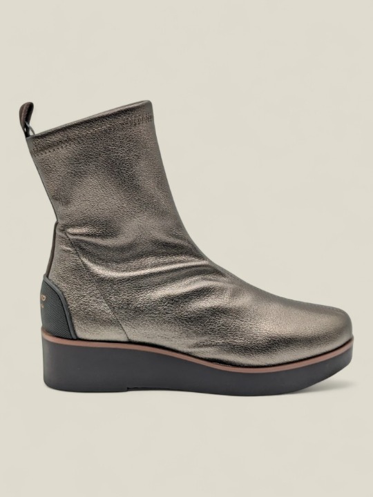 Botines elásticos. Su acabado efecto tanto de tejido, como de piel metalizada les da un aspecto elegante y moderno. El botín ajustado se adapta a la forma del pie y el tobillo, brindando comodidad y estilo. Su horma ancha garantiza un ajuste espacioso y agradable incluso después de horas de uso.