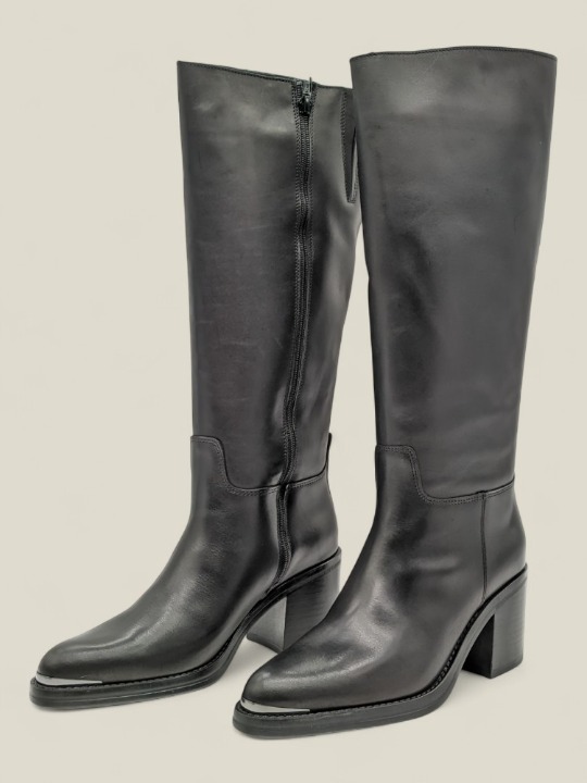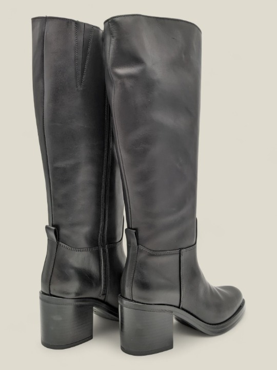 Bota para mujer ALPE JANIS, fabricada en piel de becerro con tacón de 6,5 cm, suela antideslizante y puntera redonda, con cierre mediante cremallera y caña alta.