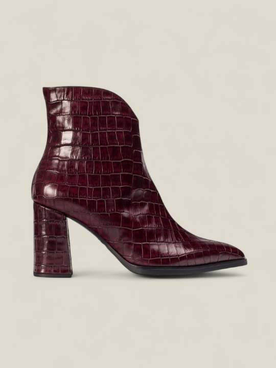 Botines AURORA fabricadas en piel grabado coco. El corte minimalista se realza con una costura central que recorre el empeine y se funde con el escote en V, estilizando la silueta. Incorpora cremallera lateral interior para facilitar el calce y tacón ancho de altura media-alta de 8cm, revestido a tono. Su suela de goma flexible aportan un extra de comodidad, combinado con la plantilla interior de MemoryGel que asegura una pisada amortiguada.