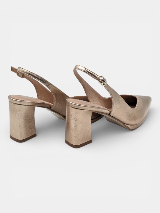 • Tacón Robusto y Chic: El tacón en bloque forrado aporta un aire contemporáneo y una estabilidad superior. Es el equilibrio ideal entre la delicadeza de una punta fina y la fuerza de un apoyo sólido. Altura del tacón 7 cm.